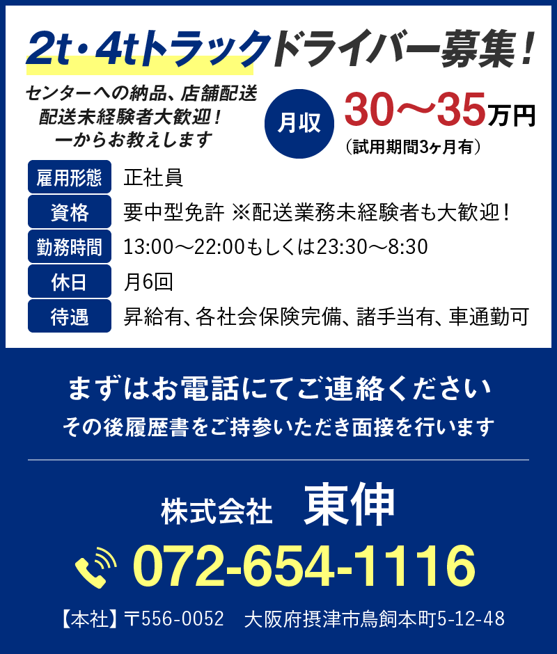 株式会社東伸は、主に関西を中心に食品を専門に扱う運送会社です。